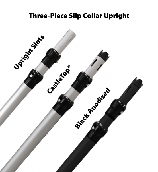 We offer two variations of this product, our Two-Piece Slip-Collar, and this Three Piece Slip-Collar. These work like a telescope, our Two-Piece model is designed with two sliding pipes and one black collar. Our Three Piece model is designed with three sliding pipes and two black collars, giving you the most range of height adjustments.