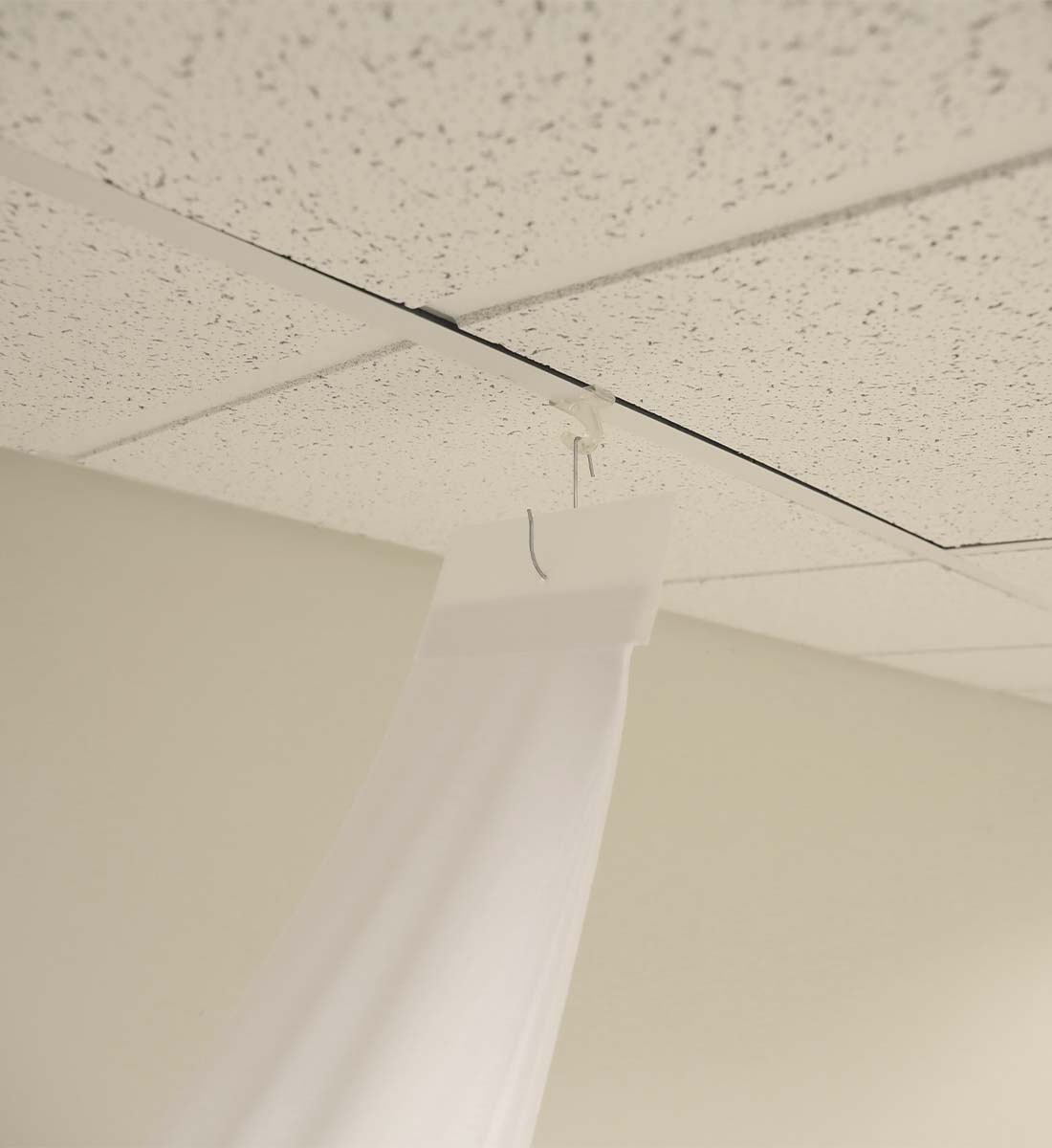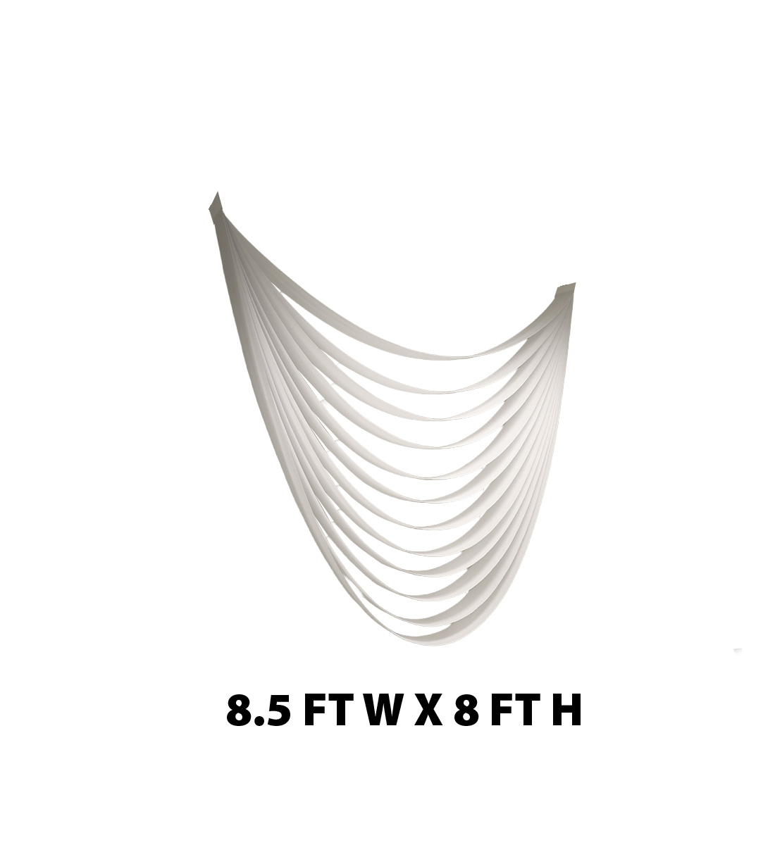 • Pre-made tiered ceiling swag panel with a cascading, layered design