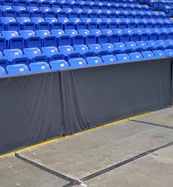 We can also make them pleated If you want to attach to the top of the dasher on the ice side. They are usually sewn with loop backing and easily adhere to the edge of the dasher boards using Adhesive Hook Strip. We can also produce flat, no pleat covers for a sleek look. We recommend sewing these out of our Poly Stretch™ fabric but can create covers using any of our fabrics. We can even print logos or graphics on the fabric using dye sublimation to really transform the look of the floor.