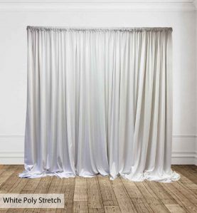 Poly Stretch™ is a newly designed fabric by Georgia Expo. It’s a two-way stretch fabric with zero, to minimal wrinkle. It’s a 75% blackout material, much more opaque than our traditional Poly Premier fabric. It’s an affordable fabric that hangs beautifully and is ultra-easy to care. The initial response showing this fabric at trade shows has been tremendous. This will quickly become a top seller. Don’t miss your opportunity to get Poly Stretch™ Drape and take advantage of all the fantastic attributes.