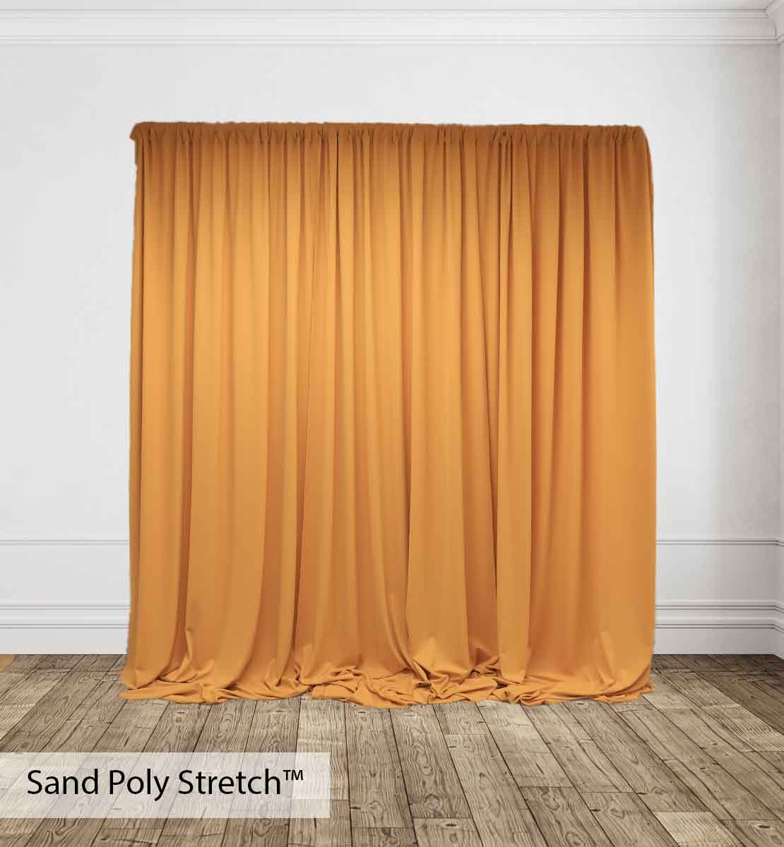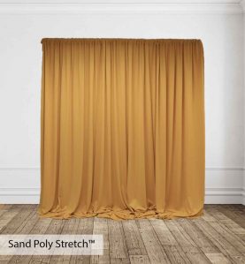 *Please note that it’s industry standard to sew Poly Stretch™ Drape 2″ shorter than full length to prevent it from touching the floor. We are happy to accommodate full-length drape if requested; please make a note in the cart if you’d like your drape sewn to full length. The standard dimensions are listed above.