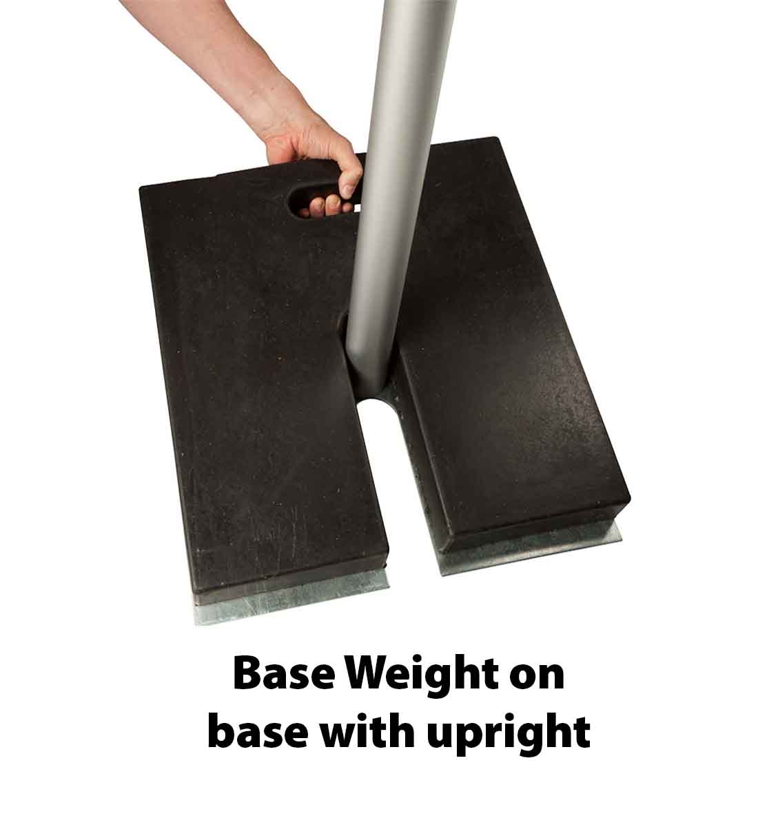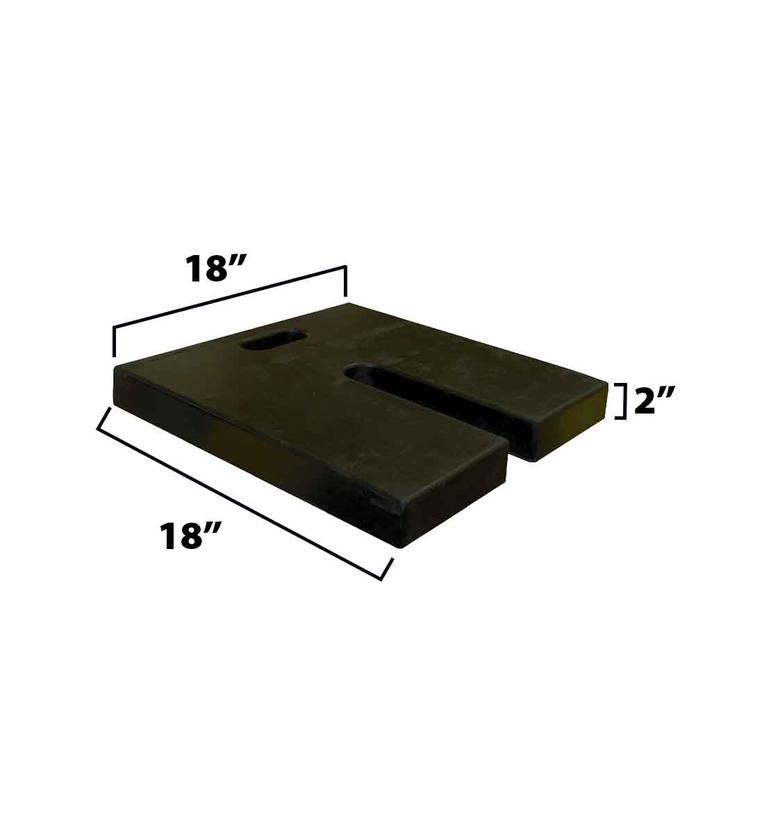 Georgia Expo Base Weights are available in two popular weights, 20lb and 30lb and are intended to add additional weight and stability to your Pipe and Drape set up. Great for adding additional weight for pipe and drape backdrops, umbrellas, and pop-up tents. They are an 18″ x 18″ x 2″ Rubber Base with a horse shoe shape designed to easily and quickly slide over an Upright and Base with a convenient carrying handle. They are stackable, professional and eliminate the need for sandbags and cinder-blocks. Made from recycled rubber, these Base Weights last a lifetime! Don’t forget to check out our Base Weight Cart too.