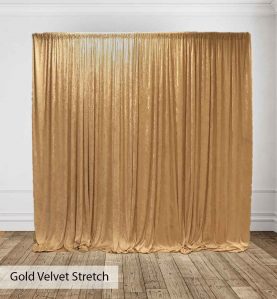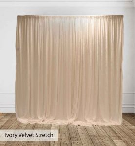 Velvet Stretch™ drape is the ultimate high-end event drapery. Velvet Stretch™ features a glamorous crushed velvet finish that’s soft to the touch. It’s surprisingly lightweight with a stretch to the fabric that gives it a nice bounce and makes this a dream fabric for professional event designers. Best of all, it’s wrinkle-resistant. Whether you’re looking for a few panels as a focal point for an elaborate backdrop design or draping a room for a luxury wedding – you can’t go wrong with Velvet Stretch™.