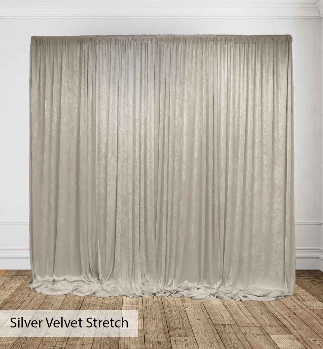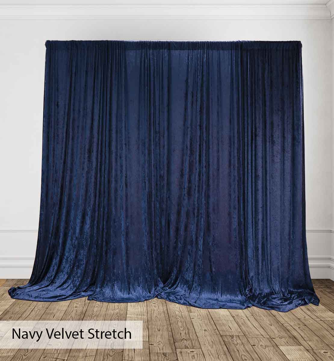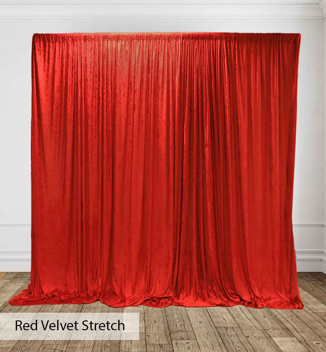 Velvet Stretch™ drape is the ultimate high-end event drapery. Velvet Stretch™ features a glamorous crushed velvet finish that’s soft to the touch. It’s surprisingly lightweight with a stretch to the fabric that gives it a nice bounce and makes this a dream fabric for professional event designers. Best of all, it’s wrinkle-resistant. Whether you’re looking for a few panels as a focal point for an elaborate backdrop design or draping a room for a luxury wedding – you can’t go wrong with Velvet Stretch™.