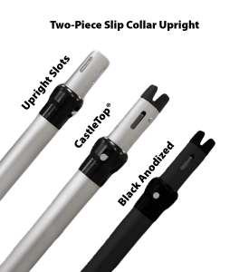 - 2-piece uprights are laser etched and numbered by full foot increments, making it easy to set exact heights at a glance.